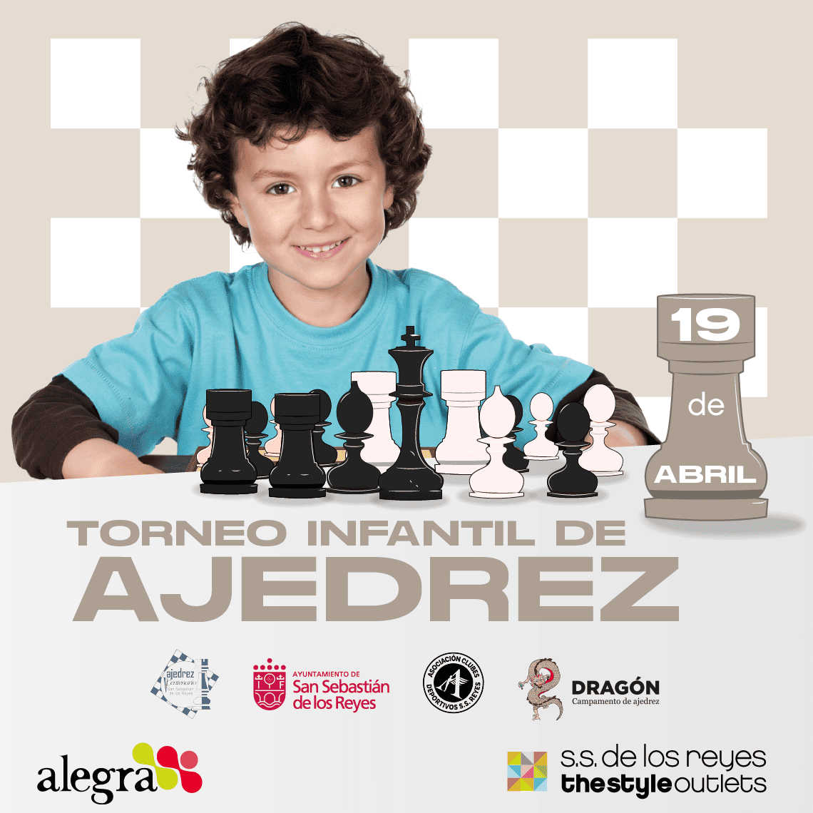 En Parque Alegra y SS de los Reyes The Style Outlets acogemos el II Torneo Infantil de Ajedrez , una gran cita con el ajedrez que tendrá lugar el domingo 19 de abril de 2026 📅.
